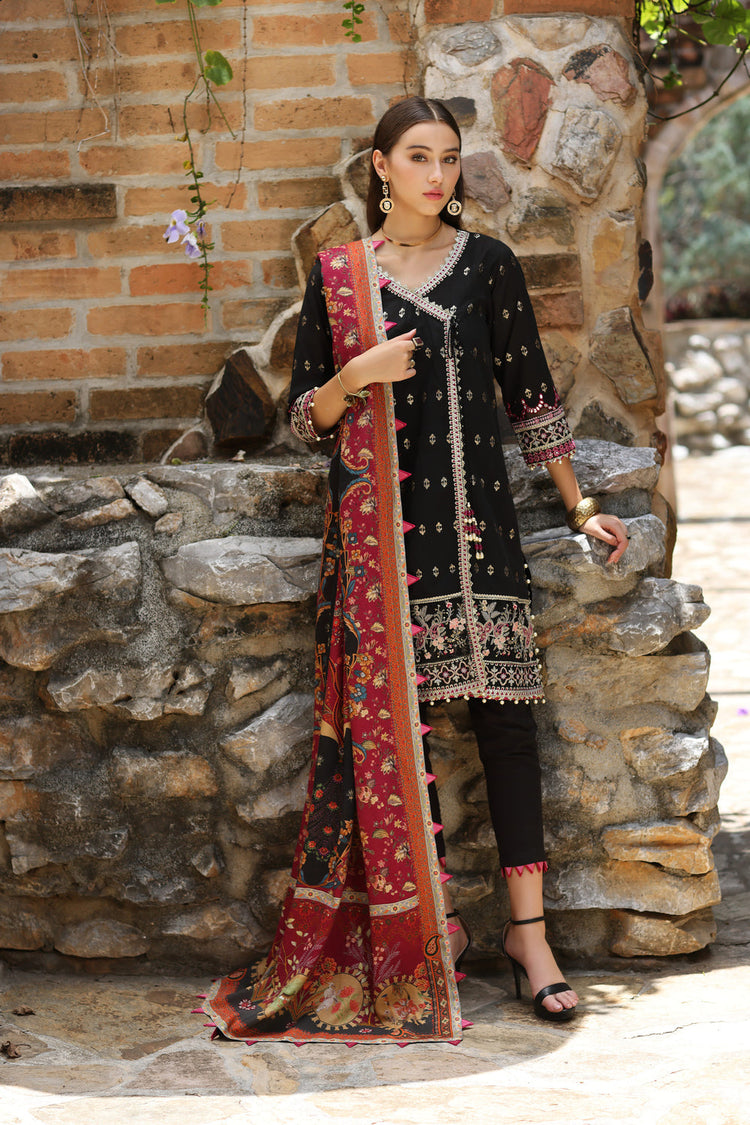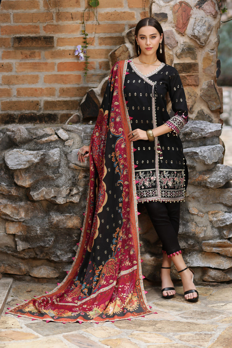 d) Pani Embroidered Sleeves Scalloped Border