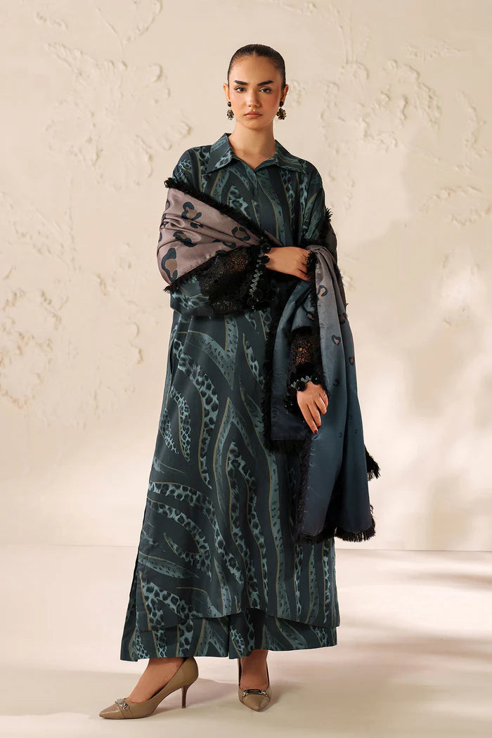 This elegant set features a digital printed viscose silk short paired with matching trousers, creating a comfortable yet stylish ensemble. The embroidered organza sleeves border adds a delicate touch of sophistication, enhancing the overall look with subtle texture. Complete your outfit with the digitally printed viscose shawl, offering versatility and a coordinated finish. Perfect for those seeking a blend of comfort and refined style.