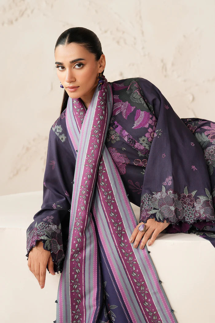 This elegant set features a digital printed viscose silk shirt paired with matching trousers, offering both comfort and style. The embroidered organza sleeves border adds a delicate, refined touch. Complemented by a digitally printed viscose shawl, this ensemble effortlessly combines traditional craftsmanship with modern design for a graceful look.