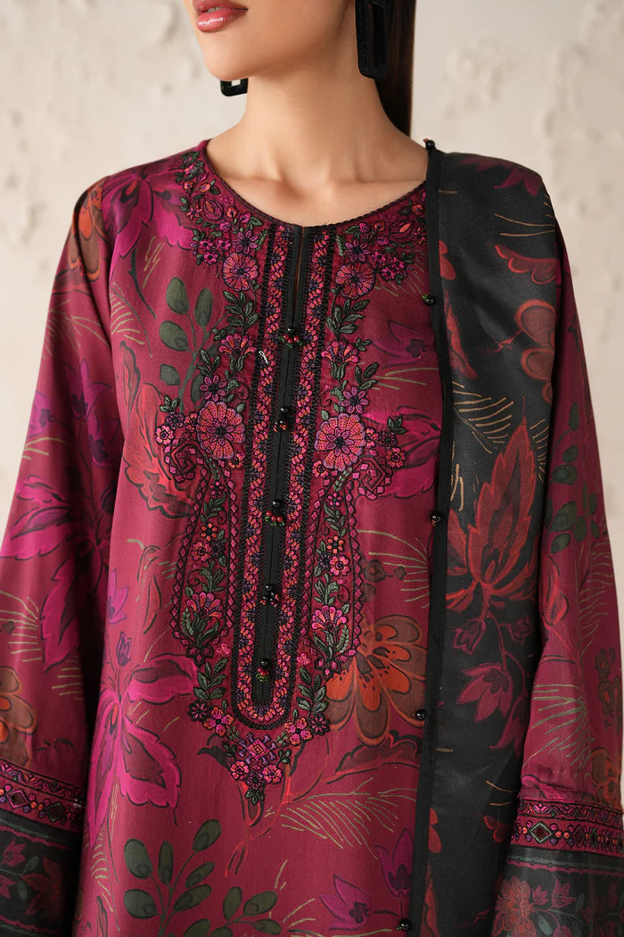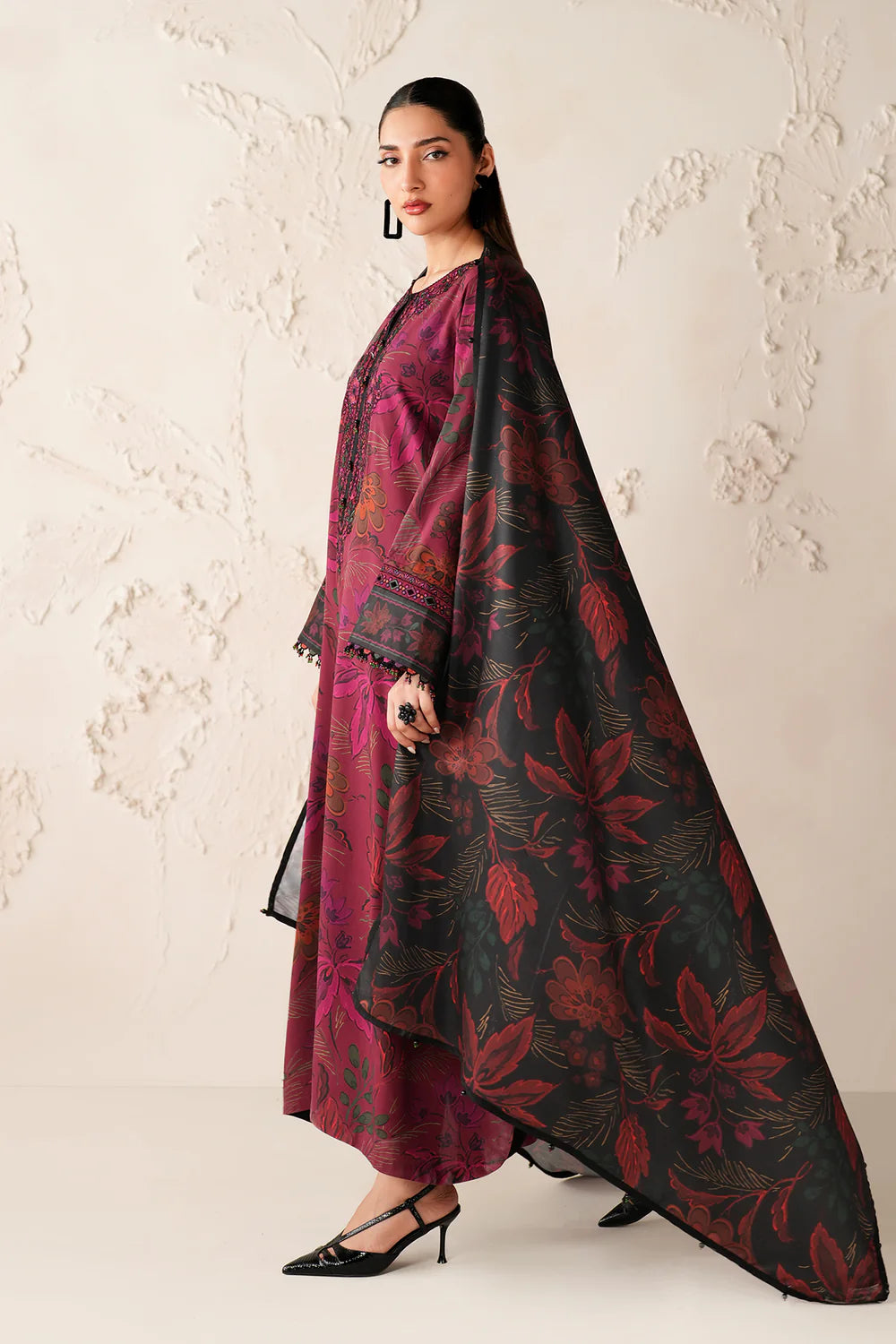 This elegant set features a digitally printed viscose silk shirt paired with matching trousers for a comfortable yet stylish look. The embroidered organza neckline patch and sleeve borders add refined details that enhance its appeal. Completing the ensemble is a digitally printed viscose shawl, offering a graceful drape and versatile styling options. Perfect for those seeking a blend of comfort and sophisticated design.