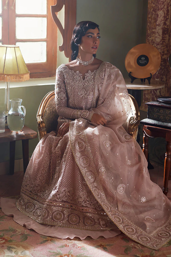 Inaya, a masterpiece of unparalleled beauty, is an outfit that exudes grace and sophistication. Designed to mesmerize in dusty pink color, this enchanting ensemble showcases an intricately embroidered sequins and hand-embellished neckline on a delicate organza net. To add a touch of finesse, Inaya is beautifully finished with a crochet lace. This delicate lace, meticulously woven with precision, enhances the overall elegance of the ensemble.