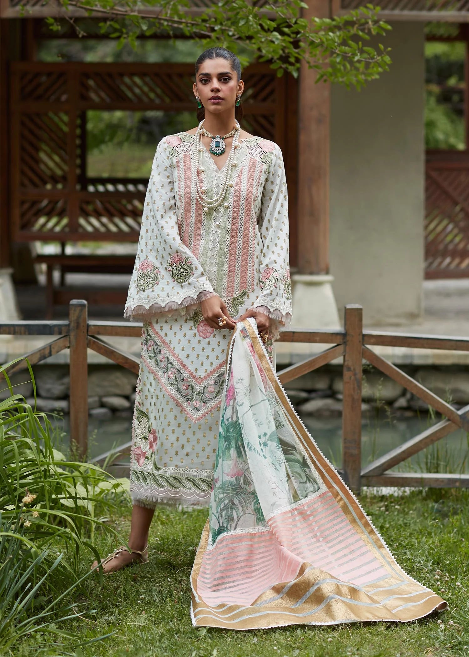 • One Hand Appliqued Gold Printed Front with Lace Shoulder and Neck Inserts and Marori Neckline