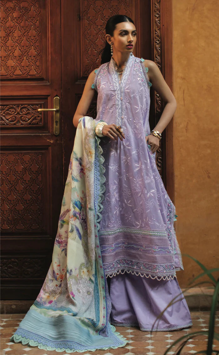Zat Lavender is FTA’s ode to spring through the dreamiest pastels and the most elegant embroideries. A lovely lavender serves as the base for a delicate, floral shadow work trellis in tonal lavender and pristine ivory. Pre-appliqued borders along with a delicate floral neckline and sleeves lifts the outfit to be a spring/summer must have.
