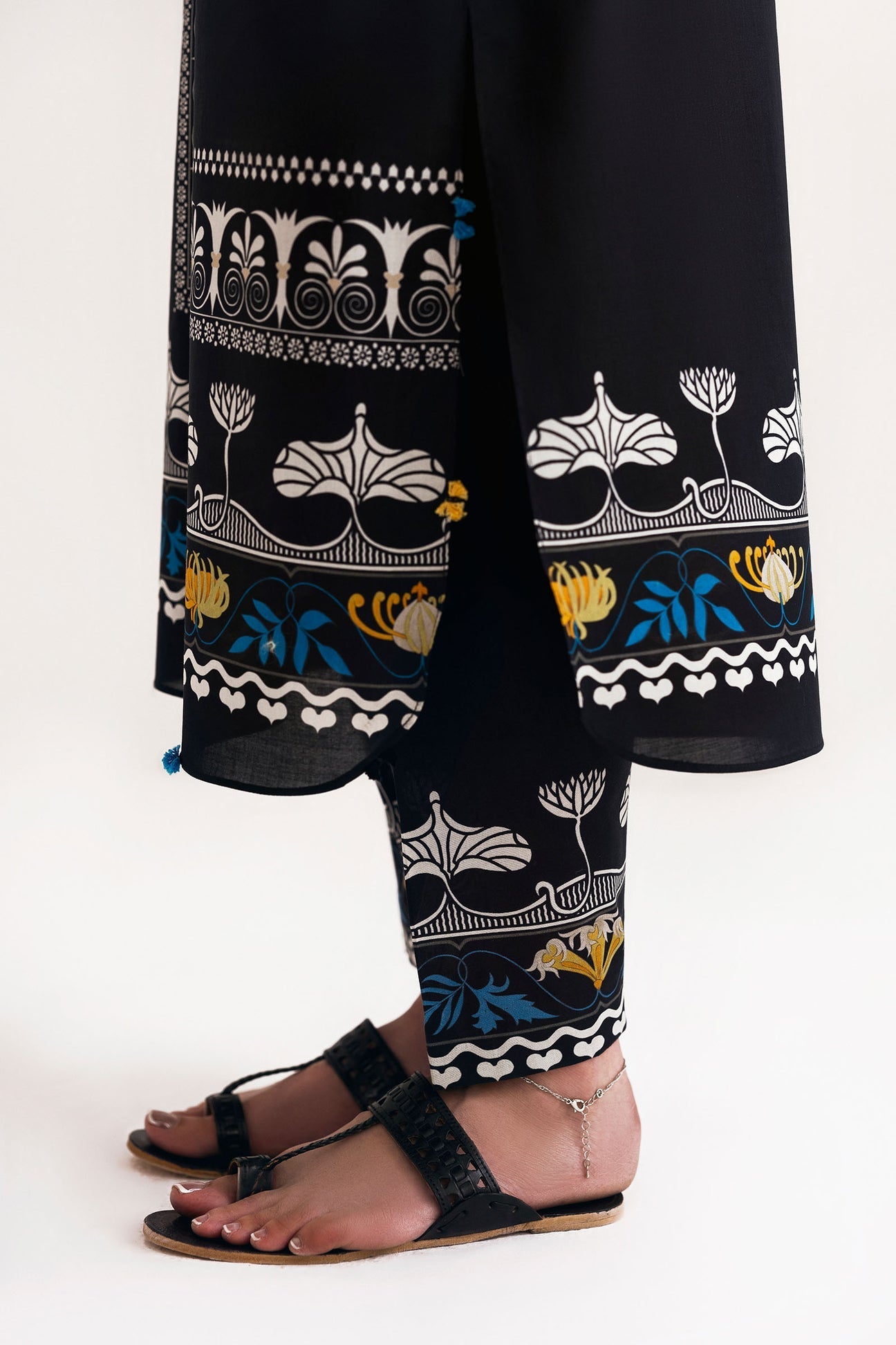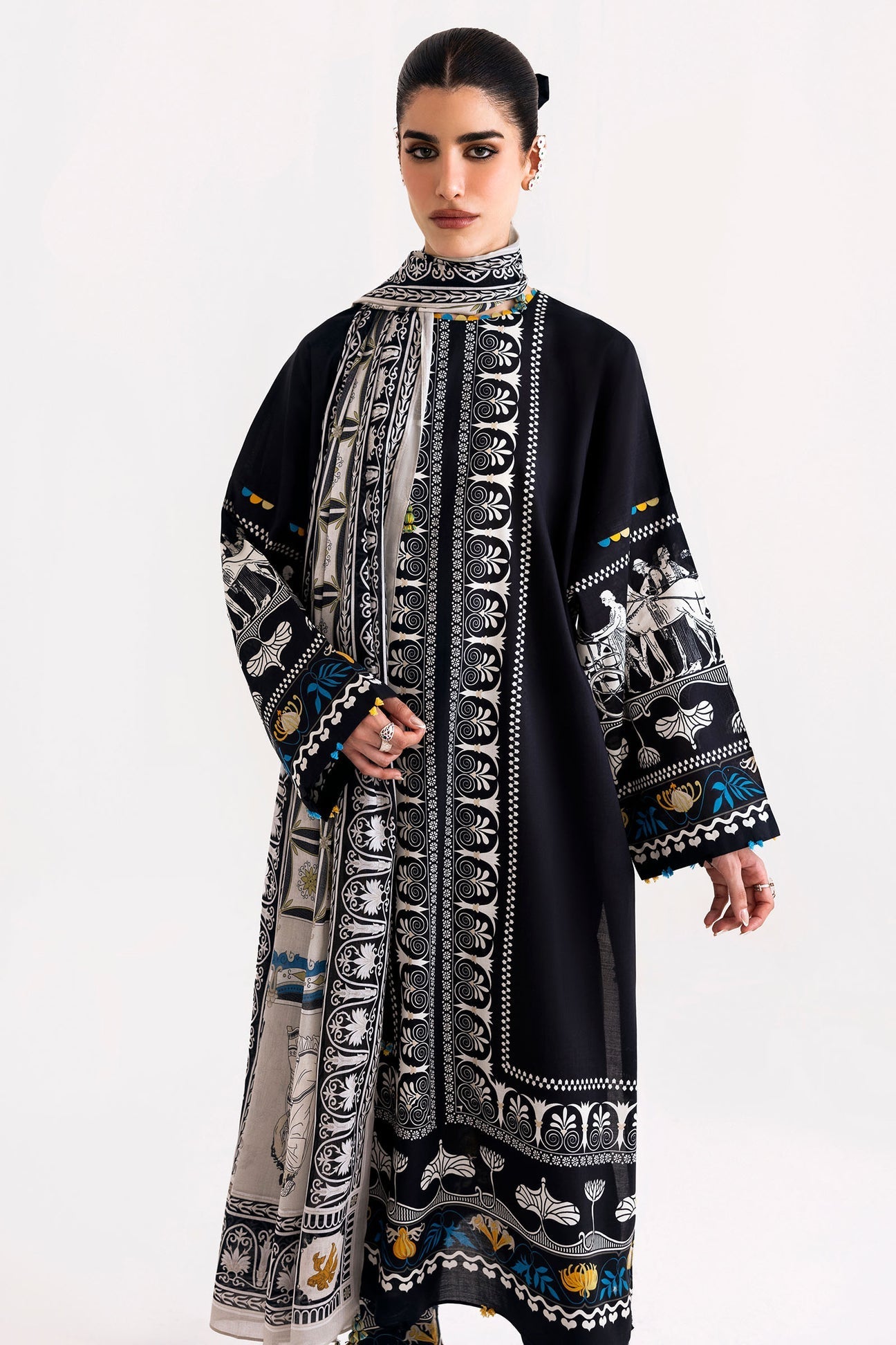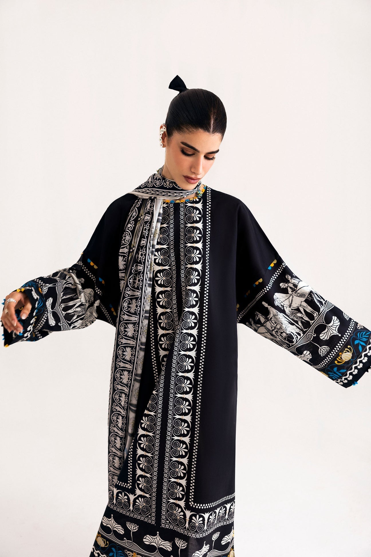 A pearl-white dupatta offsets the look, framed with blue and yellow accents and finished with tassels that add a playful sway. Paired with tonal trousers trimmed with a printed border, Liyana is a nod to history, reimagined with Zaha’s signature edge — bold, artful, and unapologetically effortless.