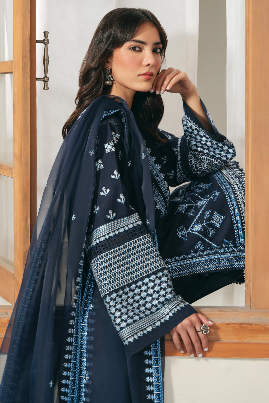 Bathed in a resplendent shade of navy blue, Roshan is a celebration of intricate craftsmanship, with delicate embroidery that harmoniously fuses traditional motifs with contemporary allure. The plush texture of khaddar offers an indulgent warmth, cocooning