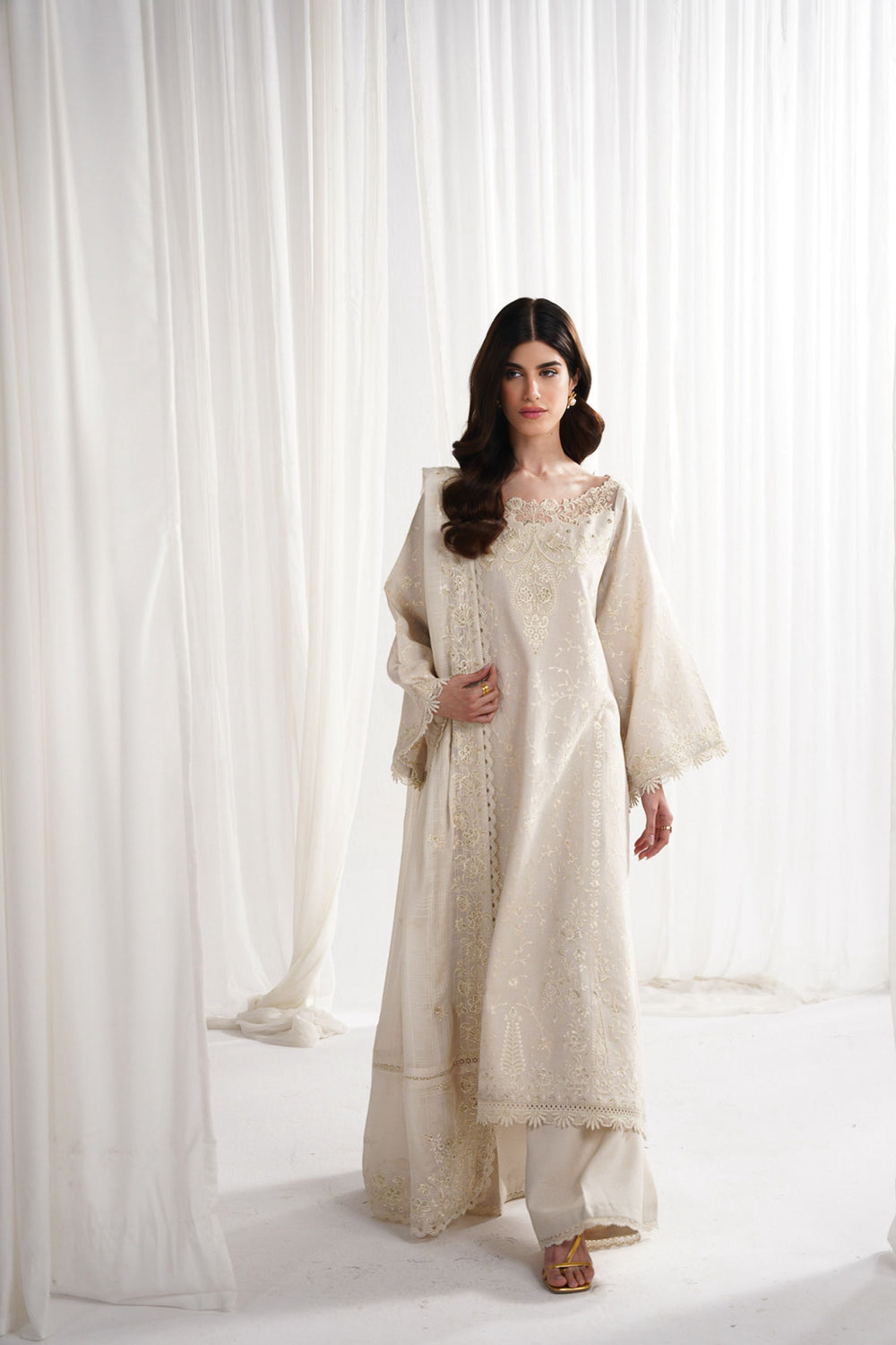 IVORY LUXURY EMBROIDERED 3PCS SET NPA3-25421