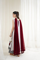 WHITE-MAROON LUXURY EMBROIDERED 3PCS SET NPA3-25426