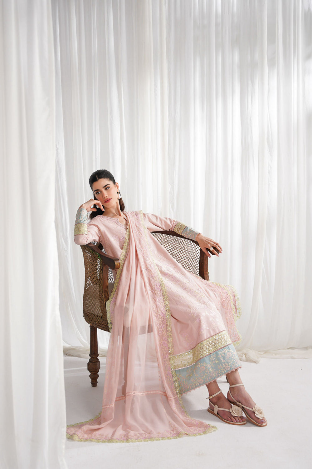 PASTEL PINK LUXURY EMBROIDERED 3PCS KALIDAR SET NPA3-25413