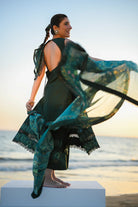 The opulent ''Emerald'', this ensemble transforms into a regal showcase of floral embroidery in hues of green that embodies serene beauty and timeless allure. The Emerald tones harmonize beautifully with the delicate florals giving sophistication and regal splendor. Paired with a resplendent printed silk dupatta, gracefully adorned with cascading floral motifs, vision of thoughtful design.
