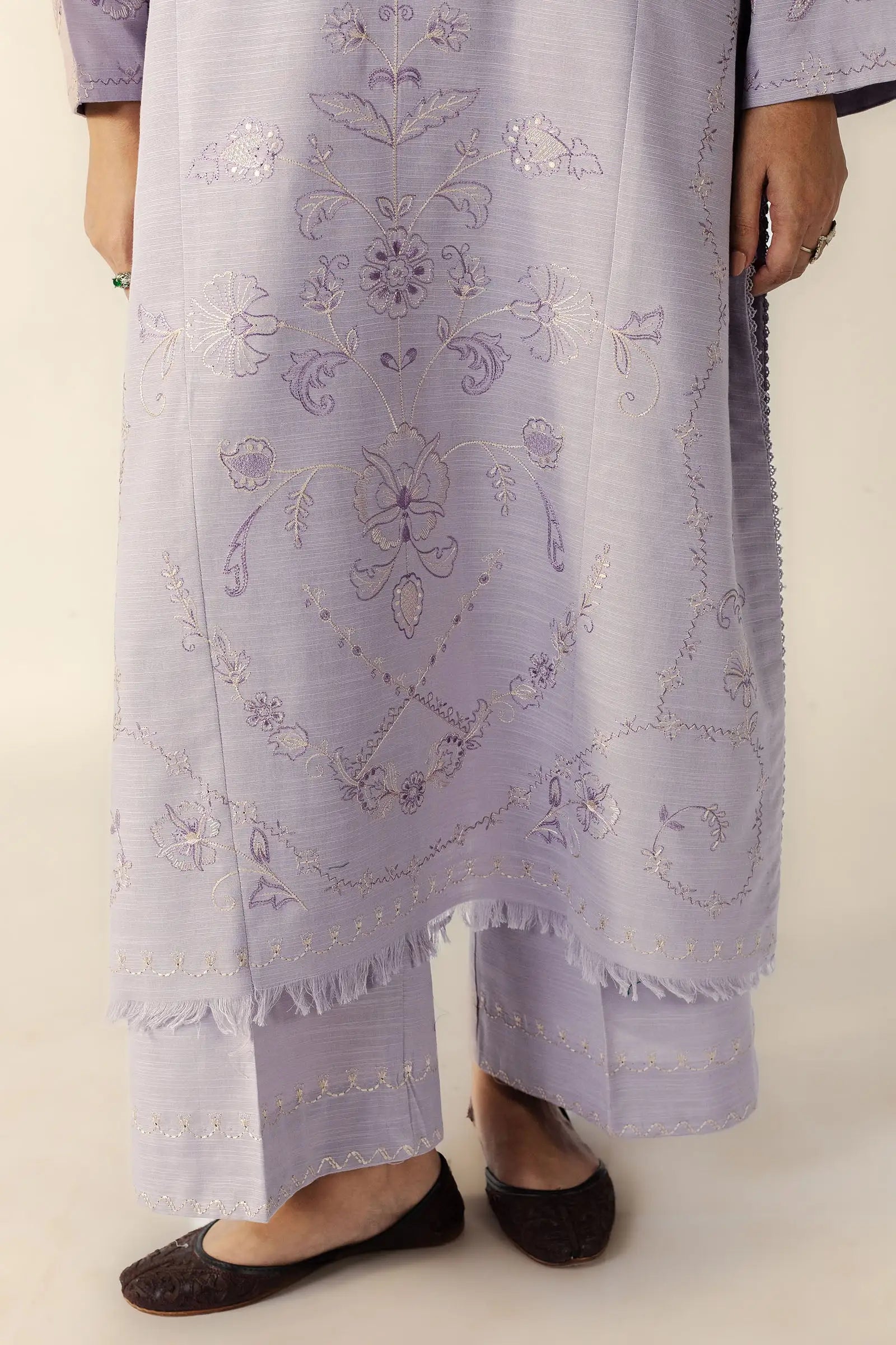 Our loose fit, long shirt adorned with intricate all-over embroidery, paired with minimal embroidered wide hem pants for a harmonious silhouette. The shawl features exquisite embroidery on the pallu, completing this timeless ensemble.