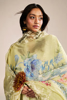 Accompanied by schiffli-embroidered trousers and a digitally printed chiffon dupatta with embroidered borders, this version of Rai is for those who understand that true power is never loud-it exists in stillness, in grace, in knowing. The silk dupatta, rich yet weightless, adds a layer of quiet opulence, draping like liquid light.
