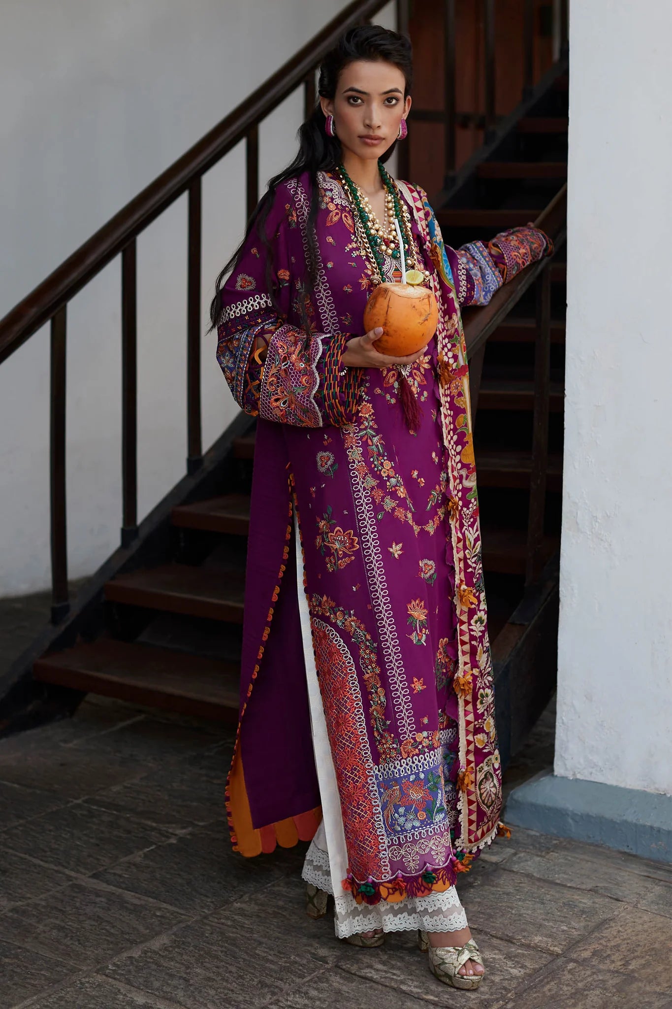Embroidered Front Left Panel (Lawn) D/Purple 1 Piece