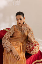 Rust color chiffon long kaftan shirt, cut worked neck & sleeves with hand work on neck, paired with separate inner.