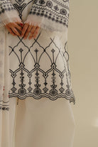 A crisp white lawn piece lifted with bold, playful embroidery in vibrant tones, finished with a cotton silk dupatta that adds a smooth, graceful layer to the look.