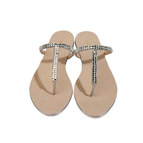 The barely there allure of the 'IVY' flat redefines closet classics with its effortless T-bar silhouette. Featuring delicate straps lined with crystals, set atop a smooth insole, this slide transitions seamlessly from day to night.