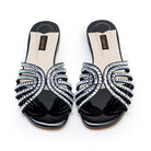 Our signature MAGNAFIQUE Flat is new and revamped! It features a classic cage pattern, adorned with glistening gemstones & crystals. Crafted in gorgeous metallic leather with an iridiscent sheen, this striking pair promises to be your go-to event-worthy piece.
