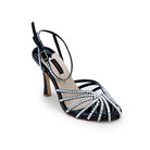 Our signature MAGNAFIQUE is new and revamped now in STILETTO HEELS! It features a classic cage pattern, adorned with glistening gemstones & crystals. Crafted in gorgeous metallic leather with an iridiscent sheen, this striking pair promises to be your go-to event-worthy piece.