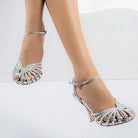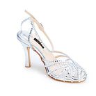 Our signature MAGNAFIQUE is new and revamped now in STILETTO HEELS! It features a classic cage pattern, adorned with glistening gemstones & crystals. Crafted in gorgeous metallic leather with an iridiscent sheen, this striking pair promises to be your go-to event-worthy piece.