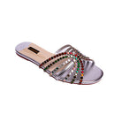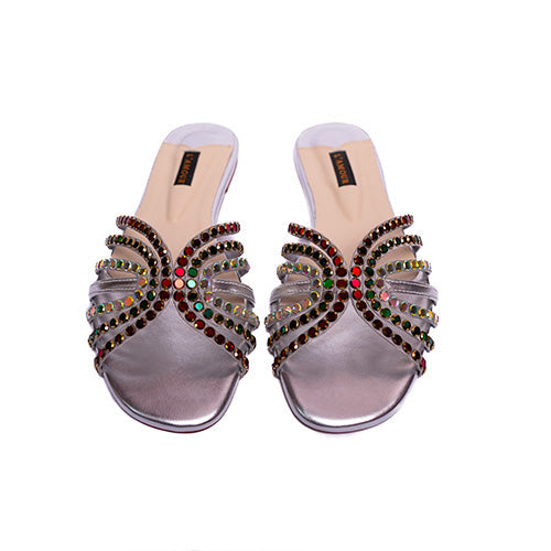 For the timeless and elegant woman, this style will be your closet staple for years to come. Featuring hand-stitched multi-coloured crystals in a scalloped pattern set on a kitten heel for extra comfort.