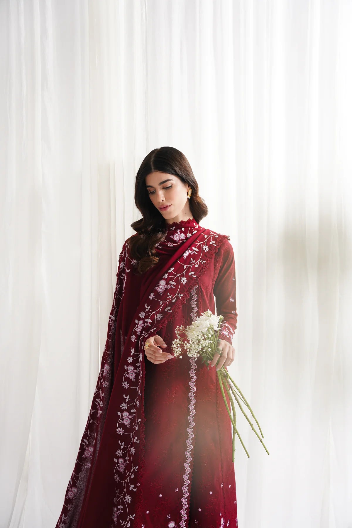 RICH DEEP MAROON LUXURY EMBROIDERED 3PCS SET NPA3-25416