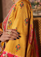 - Fine Shamose Silk with sublimation print, elevated by intricate hand embellishments using Baithki, Cut Dana, Sitara, Mirror, Gota, Gota Balls and Multi chain and Lace.