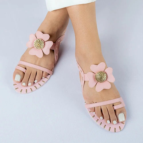 SONA brings a playful charm to festive dressing with its oversized floral appliqué and gold leather sewn edges. The petals add depth and detail, while the straps gives a snug fit. Perfect for adding personality to your everyday looks — no heels needed.