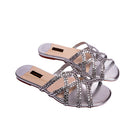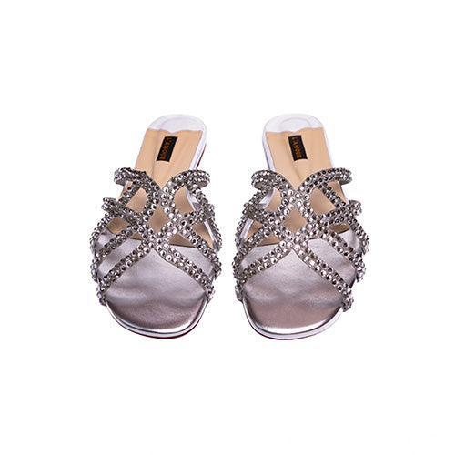 This heavily embellished strass studded pair boasts laser cut details that are intricately embellished with micro-crystals that create a criss-cross pattern. The leather adds extra comfort & cushioning while the high-shine allows you to make the ultimate statement.