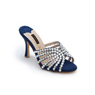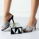 Our signature ZENIA, now in stilettos. This slide features handstitched crystals in a scalloped pattern offset against a shiny leather base. Add to your collection of staples with this versatile cult favorite.